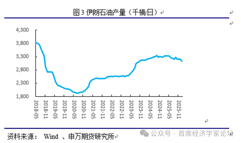 保费方面,此前通过霍尔木兹海峡的战争险保单保费为船舶重置价值的0.25%,本周将迎来大幅上调。以一艘价值1亿美元的船舶为例,单次航行的保费可能从此前的25万美元上涨至约37.5万美元。报价有效期从48小时压缩至24小时,意味着承保人已不敢为明天定价。这种"按小时计费"的紧张感,折射出市场对局势失控的深度忧虑。2025年6月以伊冲突期间,费率曾飙升至船舶价值的0.5%,此次伊朗直接打击美军基地,军事层级更高,风险敞口更大,市场自然选择"先涨价再观望"。 伊朗去年12月原油日产量约330万桶,出口约150万桶。此前由于美国压力以及俄罗斯竞品石油倾销国内市场,产量及出口已经出现小幅下滑。目前为止美国并未对伊朗石油设施进行打击。但伊朗封锁霍尔木兹海峡也会对自身石油经济造成打击。另外伊朗革命卫队曾威胁称如果自身石油设施遭到打击,中东的所有石油设施都将受到威胁。