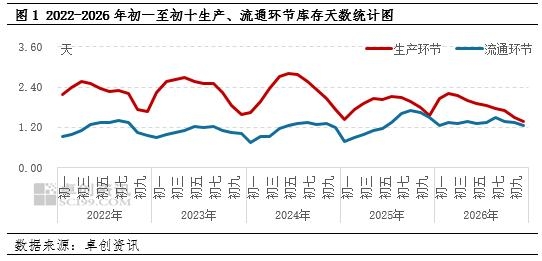 养殖端清库谨慎,贸易端备货积极 从库存端来看,春节期间生产环节平均库存天数为1.85天,降至近五年最低水平。生产环节库存创下新低,根源在于养殖户的理性操作。经历了过去数年春节后价格大跌的教训,养殖端在节前普遍采取了更加彻底的清库策略,部分产区甚至出现超淘老鸡的现象,使得节前库存就已压至低位;加之饲料成本持续偏高,养殖户挺价意愿强烈,不愿在节后低价出售,进一步限制了生产环节的库存积压。 而流通环节平均库存为1.34天,则攀升至近五年最高水平。流通环节库存创下新高,则源于贸易商的主动布局。基于对养殖端货源偏紧的敏锐察觉,以及节前价格未出现深跌的客观事实,贸易商对节后行情的预期由悲观转向谨慎乐观,因此在春节期间积极低价吸货、提前备货,主动承担起“蓄水池”功能,有效承接了本该在养殖端形成积压的货源。 这一低一高的库存数据共同指向一个事实:鸡蛋并未凭空消失,而是从养殖户的鸡舍转移到了贸易商的仓库,形成了显著的“库存转移”现象。正是这种库存结构的重塑,为节后蛋价提供了超出以往的底部支撑。