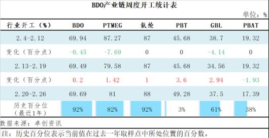 | [导语]春节之后,BDO涨价的声音却越来越多,“抢出口”转移工厂库存,部分库存降至低位,奠定了部分挺价的基础。甲醇期货价格涨幅较大,BDO成本压力增大,引发供方报价上调,随着正月十五之后小客户买盘的跟进,预计短期价格重心小幅回暖。 春节前后BDO下游减产 “抢出口”转移工厂库存 众所周知,2025年10月至今,不仅BDO现货价格持续在7000-7200元/吨区间波动,合约返点也基本维持在4-5.5区间。金九银十BDO没有涨,年约返点略收缩BDO没有涨,就连以往最容易带动价格上涨的、新疆运输紧张的时段,BDO也没有涨。但是就在春节之后,BDO涨价的声音却越来越多。 按常理来说,春节前后BDO开工始终保持68%以上的高位,而春节前后下游各行业多有检修,比如:PBT大厂集中检修,开工降至近一年的低位,PTMEG、GBL、PBAT负荷也有下滑,这四大下游占到了BDO消费量的95%,这四大下游春节消耗减量,那么BDO工厂的库存应该累积才是,怎么还会涨价呢?答案就在于“抢出口”,出口订单多需在3月15日前集中运抵港口,因此部分BDO工厂加紧交单,库存不增反降,甚至部分库存降至低位。库存的降低也奠定了部分工厂挺价的基础。