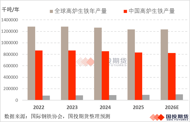 可以看到,除了蒙古煤和露天开采为主的澳洲大矿其成本低至100-120美金/吨,全球有近半的冶金煤供应商出口至中国的CFR成本分布在140-160美金/吨的较高区间内。尤其考虑到高昂的进口关税,美国焦煤销往中国基本是亏损的,因此我国进口美国焦煤的规模量也已于2025年下半年以来基本归零。按照当前我国进口低挥发硬焦煤CFR报价位于216美金/吨左右,再考虑进海运市场煤矿产品的平均折价,静态来看这2.1亿吨海运焦煤供应量中已有9%的比例陷入亏损状态。但这部分主要为美国煤,不考虑高昂关税的话当前价格基本矿山销往我国都是有出口利润的。而2025年年中,我国进口低挥发硬焦煤CFR报价最低达到160美金/吨左右,这就基本导致约三分之二的海外冶金煤供应商出口往我国的销售都是亏损的,这也极大的影响了海运煤销往我国的供应积极性。 展望2026年,受到国际冲突加剧的影响,还要额外考虑海运费成本的震荡抬升。而据我们估算,海运费成本占各大煤矿出口往中国CFR成本的比重普遍有10-20%,因此26年我们需要重点关注海运费剧烈波动对进口海运煤市场的供应影响,恐进一步导致煤矿山利润的压缩。 三、海外需求预计小幅回升,海运焦煤市场预计仍相对坚挺 在全球制造业景气度震荡弱复苏的背景下,2025年全球生铁产量合计12.33亿吨,同比小幅下滑约2.3%。其中,三分之二的减量来自于中国,而印度所提供的500多万吨增量也被欧洲和日本的减量相抵消。