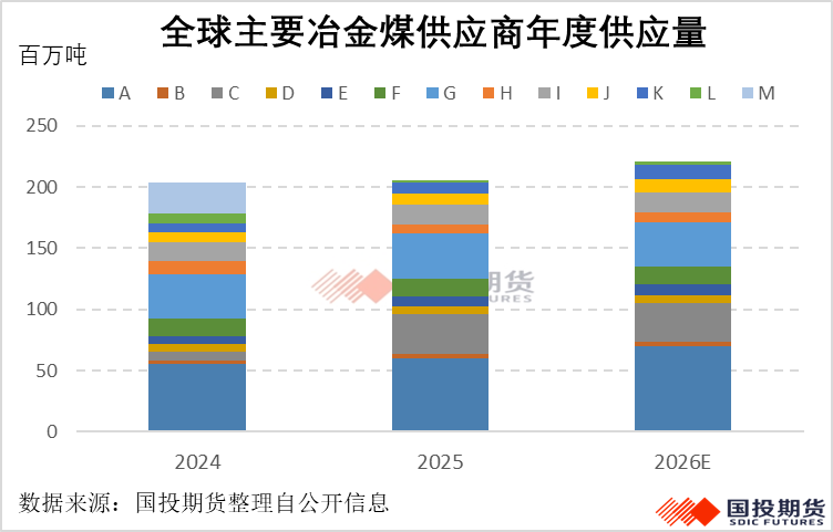 | 二月份以来,随着国际各大上市煤矿企业陆续发布了年度报告或半财年报告,我们持续梳理了海外共10家主要炼焦煤供应商的报告,结合年报所释放的重要信息以及对海外焦煤市场需求的预期,我们也对2026年的海运(焦)煤市场形成了一个简要的分析与展望,所有内容均来自公开信息来源,分析结果仅供参考。 一、25年煤矿产量扰动因素多,26年部分复产但增量恐有限 2025年,海运煤市场所受到的供应扰动因素较多,一季度澳洲各大煤矿的港口发运都受到了恶劣天气的影响,虽然大部分煤矿都靠后期的发运增量弥补了此缺口,但也存在少数煤矿产量小幅下滑的情况。此外,25年海外焦煤矿事故也较为多发,除了澳洲煤矿Appin West发生爆炸事故和利尔南矿发生火灾外,还有莫伦巴北和伊拉瓦拉被宣不可抗力,而这些事故煤矿都是国际海运煤市场中的优质硬焦煤产品,也是我国进口的重要海运焦煤产品。这也是综合造成25年上半年海运煤市场,尤其澳洲主焦煤价格独自抗跌的主要原因。