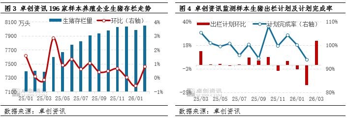 养殖端出栏计划完成受阻 2月生猪存栏转为增加 卓创资讯监测196家样本养殖企业数据显示,2月份生猪存栏量环比增加。生猪存栏增加,一方面是前期产能持续释放,市场生猪供应基数相对充足,为存栏提供支撑;另一方面则是养殖端被迫压栏所致。春节前市场需求增量不及预期,下游消化速度不及养殖端出栏速度;叠加节后需求回落明显,整体消费偏弱,需求端支撑有限,月内养殖端出栏节奏明显受阻。卓创资讯调研227家样本养殖企业数据显示,2月份全国养殖端出栏计划完成率仅为93.95%,个别区域完成进度不足90%。出栏进度不及月度目标,大量适重猪源被动延迟出栏,进而推动生猪存栏量环比回升。