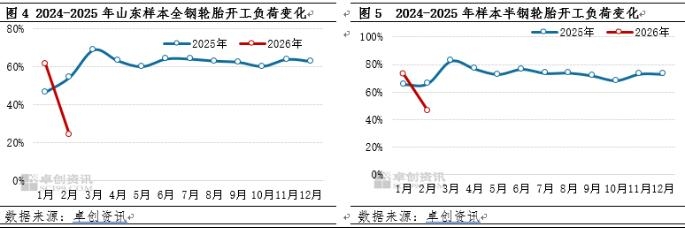 需求端:下游生产连续性差叠加1月陆续完成备货 需求表现偏弱 2月下游集中停工放假,下游刚需下降。部分非轮胎橡胶制品企业于1月底2月初陆续停工,复工基本在正月十六之后工人返岗;轮胎企业于腊月23日前后停工放假,正月初六至初八陆续复工。因2月下游工厂生产不连续,下游开工走低,据卓创资讯监测,2月山东地区轮胎企业全钢胎平均开工负荷预估值为24.19%,较上月开工走低37.27个百分点;2月卓创资讯监测的半钢轮胎生产企业月均开工负荷预估为46.09%,较上月走低26.40个百分点,与去年同期相比走低19.91个百分点。天然橡胶刚需下滑明显;同时1月份陆续完成节前备货,下游采买情绪降温。同时受制于物流停滞,运输不畅,导致月内青岛地区出库受阻,现货累库压力较大。