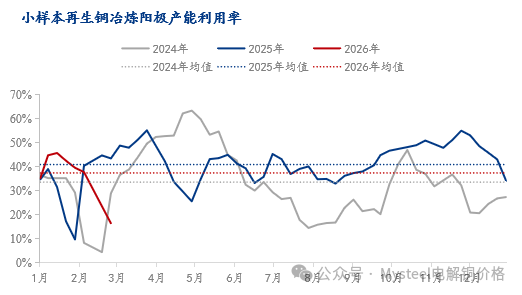 数据来源:Mysteel 再生铜供应风波再起 首先铜精矿紧张依旧延续,铜精矿供应紧张核心矛盾未缓解,在缺乏利好提振下,现货TC 将继续承压,截至2026年3月6日,Mysteel铜精矿TC价格跌至-56美元/干吨。 近期再生铜市场波澜再起,由于行业政策的调整,市面再生铜票据较为紧张,进入3月后,部分再生铜票点已达到10%以上,在票据紧张的背景下,市场交易难以推进,部分持货商的挺价心态尤为强烈。加之近期铜价重心有所下移,持货商出货意愿随即减弱,导致流通货源有所收紧。另外近期再生铜加工利润有所好转,铜阳极加工企业产量下滑十分明显,且行业政策调整以及再生市场的溢价导致的采购难的问题明显。阳极板等再生原料供应减少或将使得冶炼厂原料紧张压力加剧。