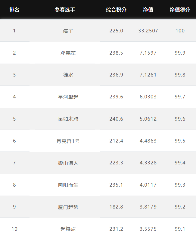 大赛净值排名前10名 2026.3.9