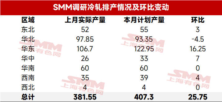 | 报告品种:热卷 原文链接:https://mp.weixin.qq.com/s/RJi8xb8j39o4HQIUd_OUGA?scene=1&click_id=6 SMM冷轧排产:3月钢厂冷轧日均排产降3.6% 据SMM最新跟踪显示,31家冷轧板卷主流钢厂本月冷轧商品材计划量总计407.30万吨,较上月实际冷轧商品材产量上升25.75万吨,增幅6.7%。 日均来看,3月天数较2月多3天,3月冷轧商品材日均排产为13.14万吨,环比上月冷轧商品材日均实际产量下降3.6%。 表1:SMM钢厂冷轧商品材计划量环比变动