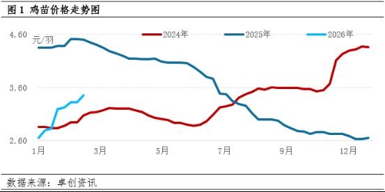 | 【导语】2026年开年以来,鸡苗价格持续走高,累计涨幅36.98%。3-5月份是鸡苗补栏的传统旺季,预计需求端转好将支撑3-4月份鸡苗价格持续走高。5月份,养殖企业春季补栏进入收尾阶段,鸡苗价格或高位回落。 2026年开年以来,鸡苗市场逐渐升温,价格持续走高。据卓创资讯监测数据显示,鸡苗周均价从1月初的2.65元/羽持续攀升至3月初的3.63元/羽,累计涨幅36.98%。这一涨幅背后,是养殖企业补栏意愿的集中释放,而部分养殖企业对后市行情持乐观预期,进一步推高了鸡苗采购需求。