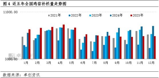 鸡苗补栏旺季来临,鸡苗销售情况可观 从鸡苗月度补栏量的柱状图走势可以清晰看出,3-5月是全年鸡苗补栏量的高位区间,是养殖企业集中补栏的传统旺季。2026 年作为行业常规养殖周期年份,养殖端生产计划整体平稳有序,季节性补栏规律仍将延续并有效发挥作用。结合当前市场供需格局及企业经营预期判断,预计 2026 年养殖企业在3-5 月整体上鸡积极性将维持较高水平,其中3-4 月有望成为全年补栏力度最强、上鸡量最集中的核心高峰期,进一步带动鸡苗需求持续释放。5月份进入养殖企业集中补栏的收尾阶段。