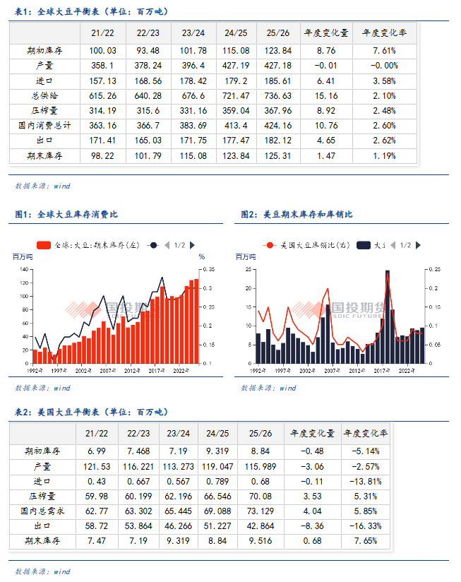 | 北京时间3月11日凌晨,美国农业部发布3月农产品供需报告。报告数据显示,新作美豆种植面积、收获面积、单产、产量、出口量等重要数据均未做出调整,大豆进口以及压榨量分别调增500万蒲式耳。一般来说3月报告不会在关键数据做出重大调整,更多的会延续1月“定产报告”的数据。后续更多数据调整,请关注3月31日发布的“种植意向报告”。今日报告发出前,从路透预测数据来看,美豆期末库存预测平均值为3.44亿蒲式耳,实际公布数据为3.5亿蒲式耳,略不及预期。 全球方面, 2025/26年度全球大豆产量预估为4.27亿吨,较上一年度调减了1.4万吨,较2月预测值调减了100万吨,其中美国、巴西产量未做调整,阿根廷大豆产量调减了50万吨。2025/26市场年度全球大豆期末库存调减至1.2531亿吨,报告前机构预期值为1.2474亿吨,2月预估值为1.2551亿吨,略不及预期。 总体来说,报告整体中性略偏空,但当前美豆期货交易逻辑仍在美伊战争,全球化肥价格上涨,以及国际船运费的上涨,仍对美豆影响较大,美豆短期或仍将继续随原油价格波动。另外本次报告也提到美豆油的美国国内使用量略有减少,其中用于生物燃料的豆油用量减少,但被食品、饲料和其他工业用途的消费增加所抵消。数据上用于生物燃料的豆油用量下调 8 亿磅至 140 亿磅,大豆油期末库存量略微上调。