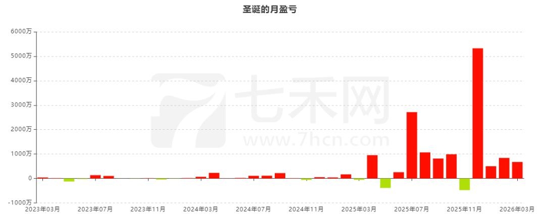 从月盈亏图来看,账户“圣诞”共计交易37个月,盈利27个月,亏损10个月。盈利最多的月份是2025年12月,盈利金额为5325.25万。