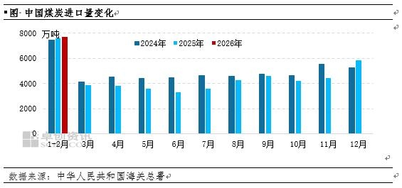 | 【导语】3月份后受印尼结束斋月活动以及雨季过去,煤矿生产及运输或整体恢复正常,同时印尼方面放宽产量配额限制,也将对煤炭出口形成一定支撑,预计3月份后中国煤炭进口量有望增长。 1-2月煤炭进口情况简析:煤炭进口总量处历史同期新高,2月单月进口量同环比均有下滑 进口量方面,据中华人民共和国海关总署数据显示,2026年2月中国进口煤及褐煤3094.3万吨,环比减少1533.6万吨,降幅33.14%;同比减少340.27万吨,同比下滑9.91%;1-2月累计进口煤及褐煤7722.2万吨,同比增长1.5%。 1-2月份中国煤炭进口量增长的原因主要是受印尼方面煤炭出口政策调整影响,具体来看:2025年11月份,印尼方面宣布下调2026年煤炭产量计划,同时提升国内DMO比例以及增加煤炭出口关税。消息发出后,引发市场参与者对后期印尼煤炭出口量明显收缩的担忧,进口商及国内用煤企业囤货需求增长,导致1-2月中国煤炭进口量出现增加。但从1月及2月单月煤炭进口量数据来看,1月份煤炭进口量数据增长明显,而2月份则出现下滑,主要是受三方面因素影响,其一,2月份正值国内春节假期,受春节假期影响,市场参与者放假休市,市场交投活动中断,影响煤炭进口;其二,2月份印尼方面限制煤炭出口口风进一步收紧,部分煤矿因产量配额减少,暂停出口,优先履行国内DMO义务;其三,印尼煤炭出口政策收紧后,印尼煤矿挺价意愿明显提升,印尼煤报价持续偏强运行,印尼进口煤价格倒挂于同热值内贸煤价格,国内用煤企业对高价印尼煤接受度下降,采购需求向内贸煤转移。综上所述,1-2月煤炭进口量创历史同期新高,单月进口量来看,月度进口量先增后减。