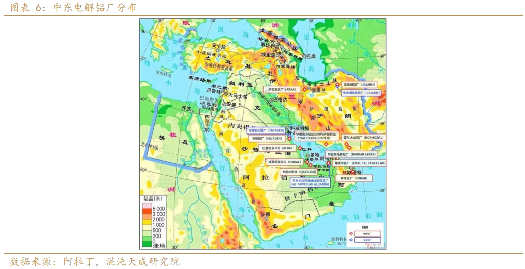 中东电解铝产业高度集中于波斯湾沿岸的六个国家,据阿拉丁统计数据显示,2025年以上六国电解铝总建成产能713万吨,其中伊朗80万吨、沙特98万吨、阿联酋269万吨和巴林160万吨。电解铝生产的原材料涉及品类主要有铝土矿(阿联酋每年需要进口约650万吨)、氧化铝(自给率仅34%)、氟化铝(中东预计需要外部进口5万吨,自给率约50%)和阳极材料(自给率约80%)。其中氧化铝自给率最低,六国氧化铝总体自给率仅34%,除沙特可以完全自给外,其余国家都高度依赖进口氧化铝进行生产。据阿拉丁月初调研了解,部分中东域内电解铝企业表示氧化铝库存保障天数普遍在30天左右。如霍尔木兹海峡持续封锁,中东电解铝厂面临无原料生产的囧境,减产将是必然的结果,短期已发生的有:1、卡塔尔因天然气供应问题将在3月底前停产,复产预估需要6-12月。短期出现反复,公告称维持60%的产能。2、巴林为优化原料使用,已停产19%的电解铝产能。当前霍尔木兹海峡仍处于实质封锁的状态,我们认为驱动仍在,且随着封锁时长加长,原料库存去化后,电解铝减产是不可避免会出现的。