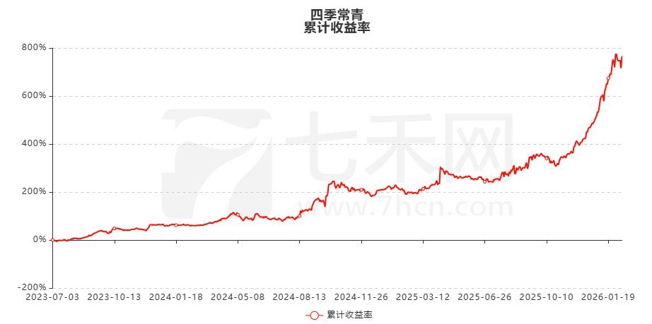 账户“四季常青”,于2023年7月3日开始在七禾网资管排行榜上展示,账户收益率逐步增长,资金曲线整体呈震荡上升态势。截至目前,账户累计净值8.6613,累计收益率766.13%,累计净利润1022.13万,最大回撤18.65% 。