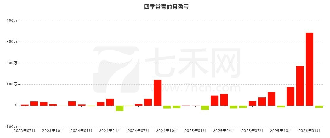 从月盈亏图来看,账户“四季常青”共计交易32个月,盈利21个月,亏损11个月。