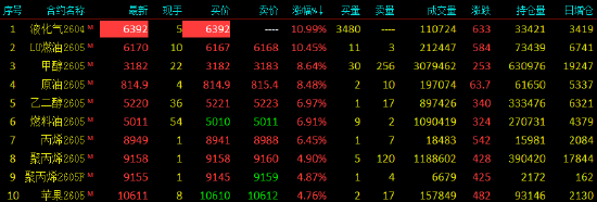 | 2026年3月19日,国内期货主力合约涨跌不一。液化石油气(LPG)涨10.99%,封涨停板;低硫燃料油(LU)涨超10%,SC原油、甲醇涨超8%,燃料油、乙二醇(EG)、丙烯涨超6%,苹果、聚丙烯(PP)、沥青、塑料涨超4%;跌幅方面,沪银跌超10%,钯跌超8%,铂、沪锡跌超7%,多晶硅、碳酸锂跌超6%,沪金、沪铜、国际铜跌超4%。