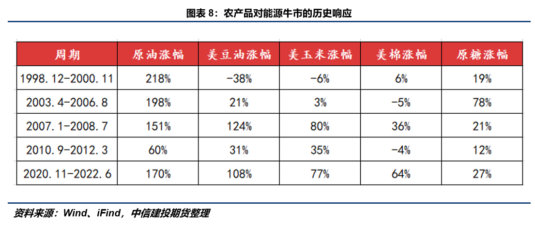 近期,全球主要农产品出口国正基于各自的内外环境,频繁调整贸易政策与条件,共同构成了当前国际农产品市场的复杂图景。巴西方面,因中国买家的投诉,政府正就大豆出口的检验与安全要求进行协商,旨在平衡中方质量要求与本国出口效率。印度尼西亚则出于财政预算考虑,表示可能对棕榈油等商品征收额外税款,以应对潜在的收入压力。与此同时,美国生物柴油政策的潜在激励变化,正影响着市场对豆油等原料的需求预期。此外,地缘冲突推高油价,进而传导至生物燃料原料领域,已直接抬升了乌克兰新季油菜籽的出口远期价格。这一系列动态表明,贸易条件已成为各国调控市场、应对成本与维系贸易关系的重要工具,并持续塑造着全球农产品的流动与定价。 若将上述三类分歧放在同一框架下观察,其实都指向同一个问题:在当前宏观环境中,农产品早已不再是一个由天气、供需等因素决定的封闭市场,而是越来越深地嵌入到政策、能源、财政与贸易的交叉影响之中。因此,理解农产品价格波动,应从传统的单一产业视角转向内外商品联动视角。 从农产品对原油牛市的历史响应来看,豆油始终是与原油联动性最强的品种,因其需求端(生物柴油)与原油直接竞争。玉米的联动性在生物燃料政策强化后(2005年后)系统性提升。糖的联动取决于巴西的糖醇比政策,时强时弱。棉花更多通过化纤替代(关联有限)和经济周期(需求端)间接受影响。