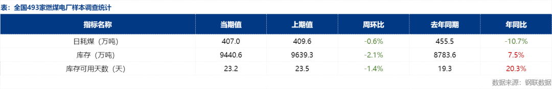 | 报告品种:焦煤 原文链接:https://mp.weixin.qq.com/s/bhsJz3076nBtFsCGPiYZtA 近日,主产地区域内多数煤矿正常生产销售,煤炭供应量基本持稳。非电用煤需求有所提升,市场情绪进一步升温,在产煤矿拉运节奏稍有加快,煤矿销售情况尚可,价格小幅上调。目前化工煤需求较好,短期内对煤价有一定支撑,煤价暂时维持偏强走势。 需求方面,随着气温回升,北方集中供暖临近收官,市场正式进入传统用煤淡季,电厂机组检修将逐步铺开,同时春季汛期来临,水电替代效应增强,火电需求预计持续收缩。非电方面,化工耗煤维持常态,需求释放有限,目前各环节库存较为充足,下游补库意愿不足。本文将对上周终端电厂样本数据进行解读,同时对于近期市场以及后续影响需求的因素进行简要分析。 据Mysteel统计,截至3月13日全国493家电厂样本日耗煤407.0万吨,环比降2.6万吨,厂内存煤总计9440.6万吨,环比降198.7万吨,可用天数23.2天,环比降0.3天。