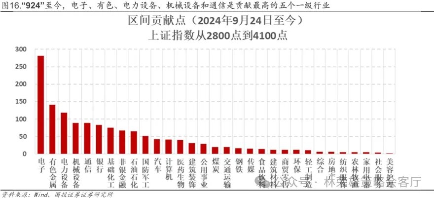 对于当前市场可能走向滞胀交易的担忧,我们对A股可能受到的潜在影响进行了评估,从上证指数的层面看,“924”行情至今,上证指数从2800点涨至4100点,其中电子、有色、电力设备、机械设备和通信是贡献最高的五个一级行业,除去有色之外,电子和通信是科技线的代表,而电力设备和机械设备则是出海线的代表,体现为“出海+科技”双主线的特征。但这两条主线无疑会在滞胀交易中受到冲击,出海受到“滞”带来的景气下滑影响,而科技则受到“胀”带来的流动性收紧影响。 如果我们以2025年6月23日(本轮牛市加速阶段)作为起始点来观察,在排名靠前的一级行业中出现了化工和石油石化,这也导致贡献排名前六的一级行业有三个属于顺周期资源品领域,叠加银行、非银等可能起到的防御和护盘作用。当前的A股在指数层面受到滞胀冲击时市场仍然可能具有韧性,但结构分化可能会加剧。