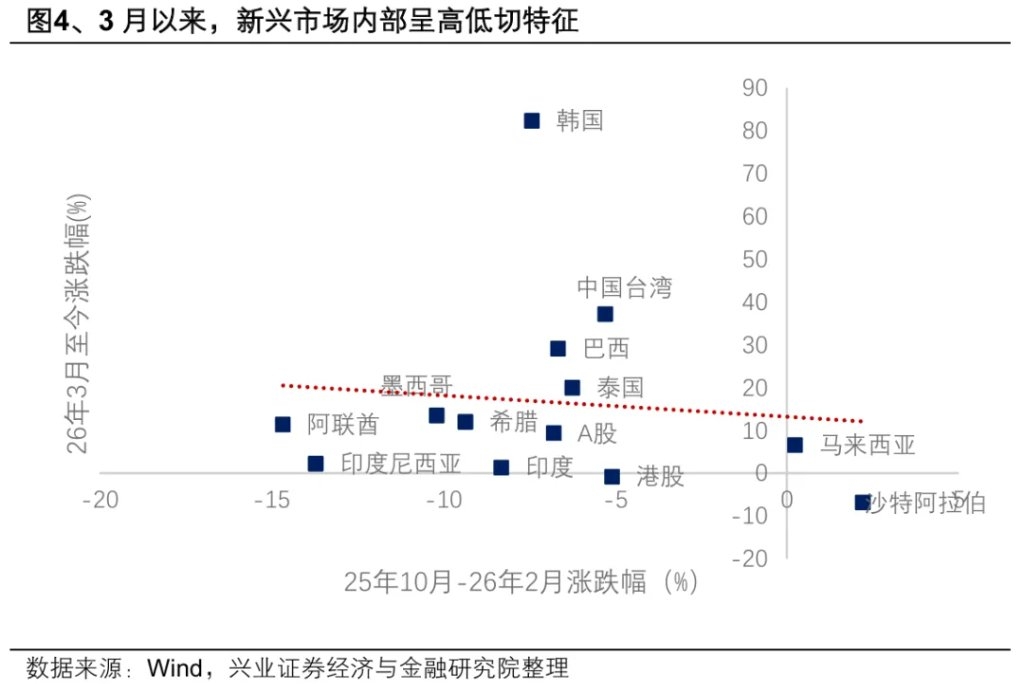 我们认为近期加仓港股的外资或以亚太地区的灵活资金为主,而非中东长线资本。一方面,近期市场剧烈波动,外资呈双向交易特征,其和中东主权财富基金等中长期资本的投资理念不匹配。另一方面,尽管在地缘格局动荡的背景下,中国凭借其确定性大概率将吸引更多中东资金加大配置,但这是一个中长期的慢变量,并且在很大程度上还受到美以伊战争最终结果的影响,短期对资本流动的影响或相对有限。 第一,我们认为本轮加仓港股的外资或以海外对冲基金等灵活资金为主。根据EPFR数据来看,受全球风险偏好回落和流动性预期收紧影响,代表海外长线资金的海外主动基金3月以来逐渐流出香港市场,2月26日-3月18日,合计卖出5.5亿美元。因此,我们推测近期参与港股的外资或以对冲基金等灵活资金为主,其背后的加仓逻辑可能在于全球高波动环境下,资金从此前强动量的韩国和中国台湾等市场往悲观预期定价较充分的港股转移。