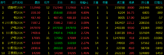 | 2026年3月24日,国内期货主力合约涨跌不一。碳酸锂涨超6%,钯涨超4%,铂涨超3%,沪锡、沪银、20号胶涨超2%,跌幅方面,低硫燃料油(LU)、SC原油跌超8%,燃料油跌超7%,乙二醇跌超6%。