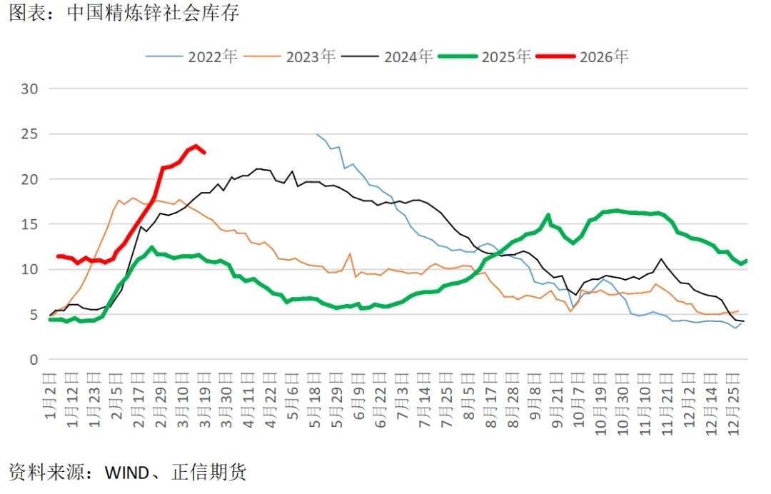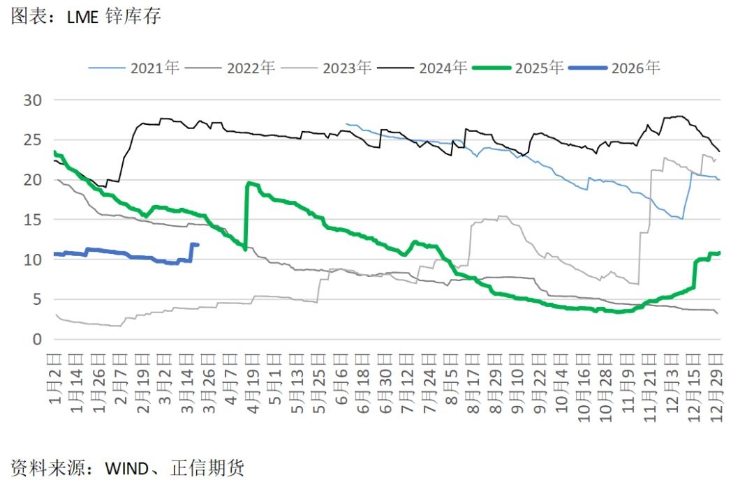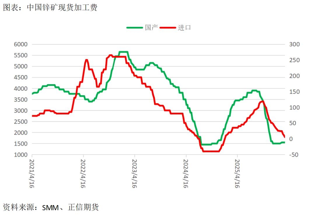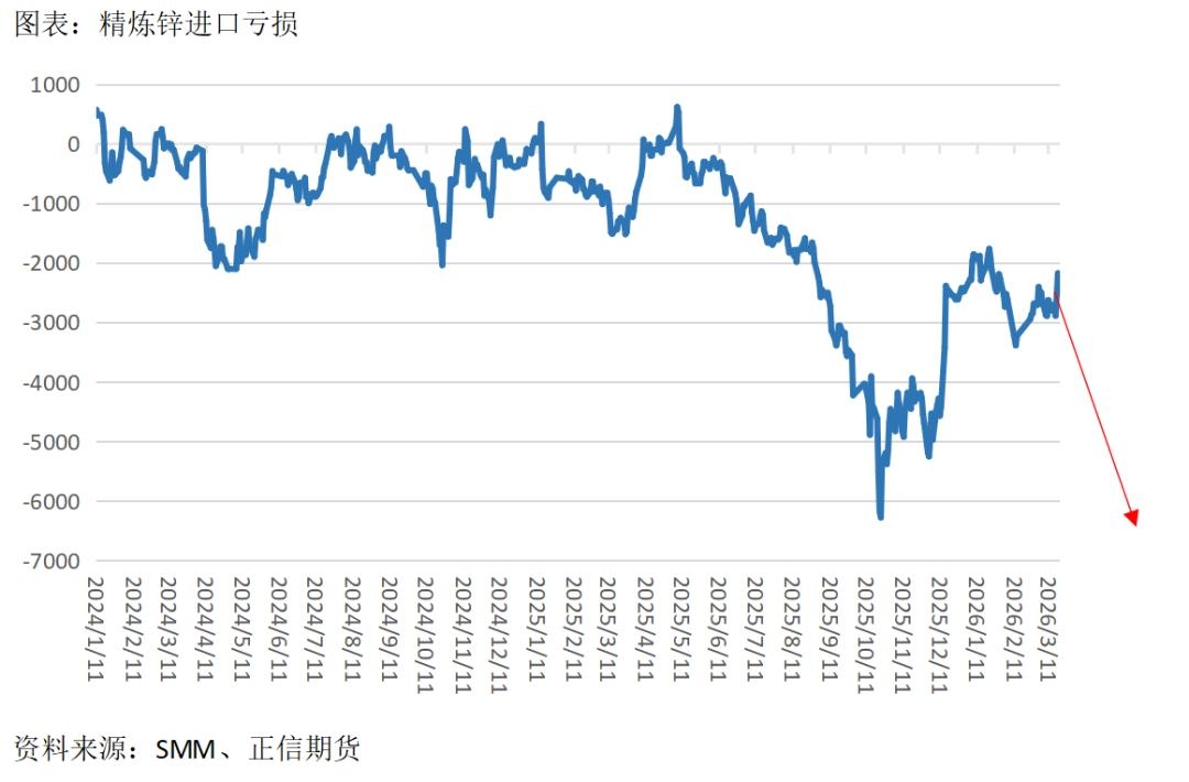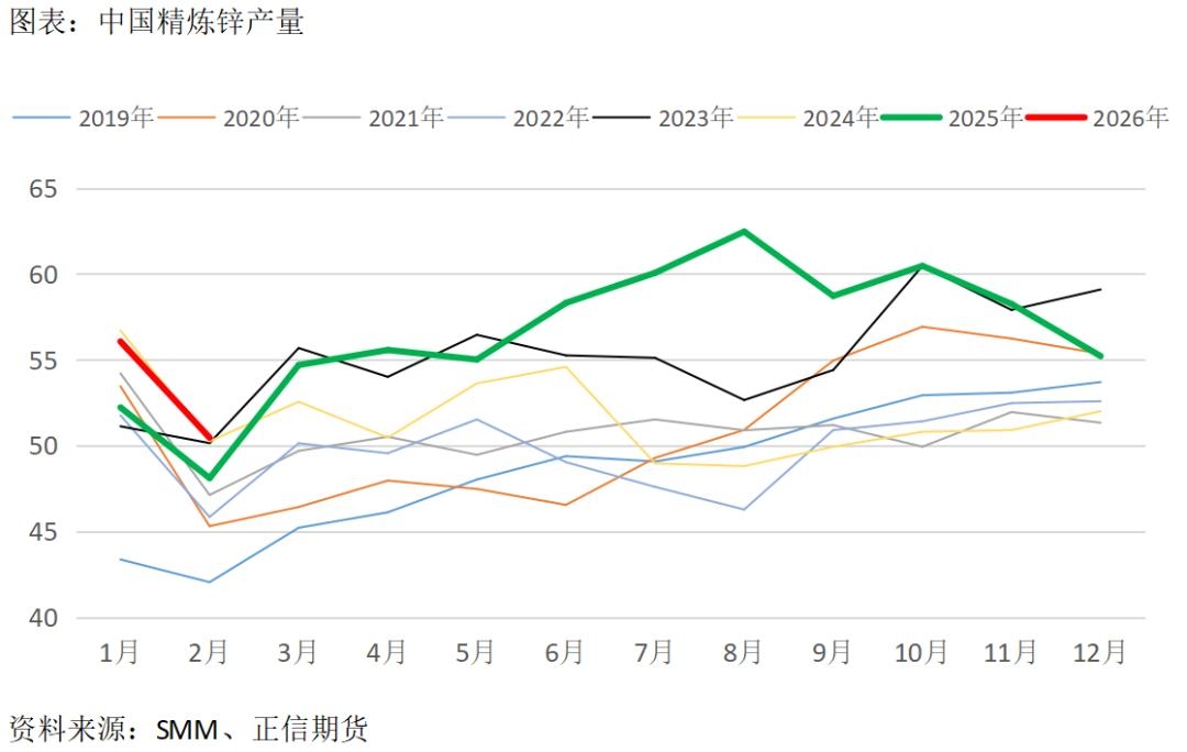 根据海关数据,2026年1-2月中国进口锌矿100.88万吨,同比增加17%,延续增长趋势。在全球层面持续极致低加工费的背景下,国内炼厂显现一定的低成本优势,原料供给有更多比例向国内炼厂倾斜。