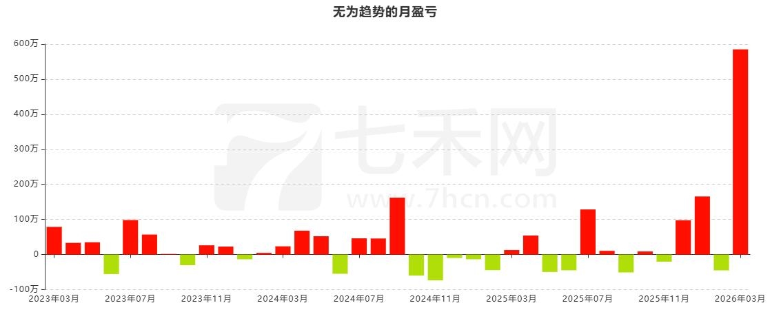 账户“无为趋势”共计交易37个月,盈利23个月,亏损14个月。盈利最多的月份是2026年3月,盈利金额为585万。