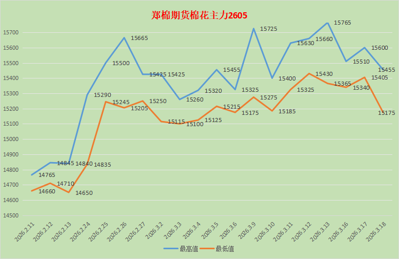9、棉花:郑棉CF2605主力合约在15175~15765之间剧烈震荡,预计短期内仍以区间震荡为主,偏强运行。市场供应暂时充足,也不乏炒作的声音。