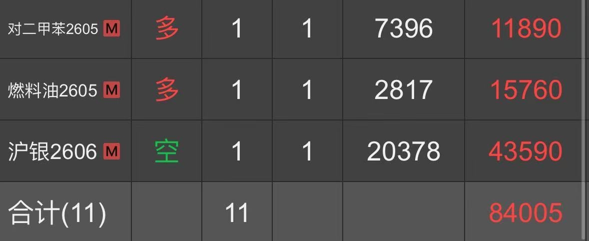 沥青:2026年2月25日,达到启动点的开仓条件,所以在14:50开多一手沥青2604合约,开仓价为3359。沥青2604合约于2026年3月12日14:41移仓至主力合约2606,开仓价为3988。