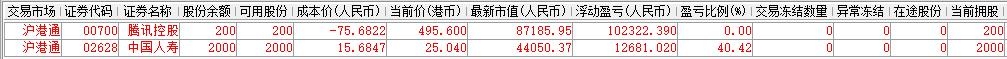 | 账户初始资金:100000.00元 2015年5月18日入金:32000.00元 2015年5月29日入金:9000.00元 2015年6月23日入金:20000.00元 2015年6月26日入金:10000.00元 2015年6月29日入金:20000.00元 2015年7月3日入金:20000.00元 2015年7月8日入金:10000.00元 2016年1月12日入金:90000.00元 2016年1月22日入金:100000.00元 2016年1月27日入金:100000.00元 2016年3月21日出金:270000.00元 2016年4月12日出金:35639.23元 2016年0月10日出金:56913.08元 2016年10月28日入金:60000.00元 2017年3月7日出金:113800.00元 参考市值:152787.32元 账户资产:153189.10元 截至今日账户A股盈亏:41068.36元 截至今日账户港股盈亏:109935.99元 账户净值:1.715 资金股份