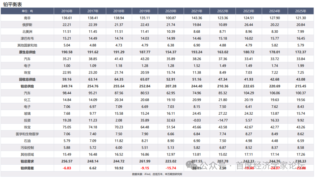 铂金与钯金同为铂族金属,在地质赋存与供应结构上高度重叠。根据25年的相关数据,全球超70%的铂矿产自南非,超四分之三的钯矿产自俄罗斯和南非,且多为伴生矿,扩产周期较长。这一高度集中的供应格局,使两者在2026年面临着共同的供给端约束。 南非国家能源监管机构批准了2026年4月起8.76%的电价上调,矿业委员会指出部分冶炼厂涨幅甚至达到19%。值得注意的是,南非国家电力公司Eskom在2025年实现多年来首次全年盈利,连续一年未实施轮流限电,因此本轮电价上调是在供电稳定性有所改善后发生的。对于铂钯生产这一典型的电力密集型产业而言,边际成本上移为价格提供坚实的成本支撑,同时高成本矿山恢复产能的意愿受到制约,叠加另一个主要生产国俄罗斯面临制裁风险,这些因素共同加剧了全球铂钯矿产供应的压力。 需求方面,两者同样承受着汽车催化剂需求下滑的压力。随着全球新能源汽车对传统燃油车替代趋势的持续推进,汽油车尾气催化的铂钯需求将持续走弱。因此,钯金面临供应过剩的结构性压力,但铂金拥有氢能经济的长期叙事。由于单原子铂催化剂领域的技术突破,PEM电解槽与燃料电池的用铂效率持续提升,氢能产业用铂需求有望在未来数年实现十倍增长,为铂金提供稳定的需求增量。
