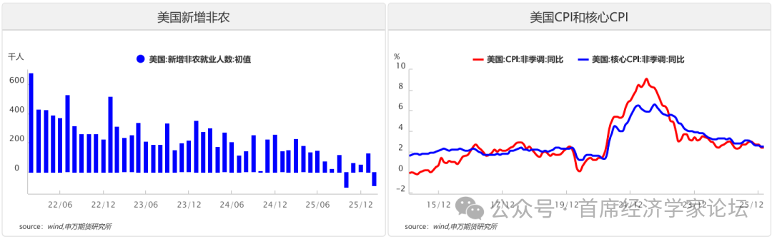 一、宏观驱动因素分析 1.全球经济增长与通胀 美国2月非农就业数据大幅不及预期,与中东地缘冲突引发的油价飙升形成共振,导致市场滞胀预期升温。2月非农就业减少9.2万人,远低于市场预期的增长5.5万人,前两个月合计下修6.9万人,强化就业市场加速走弱的信号。结构上看,私营部门就业减少8.6万人,较上月骤降23.2万人,其中建筑业减少1.1万人(较1月下降5.9万人),制造业减少1.2万人,教育和医疗保健减少3.4万人(较1月下降16.3万人),休闲住宿减少2.7万人。 此次就业走弱可能受多重因素扰动,包括医疗行业罢工、统计模型调整带来的负面影响,以及2月极端寒潮天气的短期拖累。此外,失业率从1月的4.3%升至4.4%,高于市场预期的4.3%。薪资增速则保持韧性,2月平均时薪环比上涨0.4%,与1月持平,高于市场预期的0.3%,同比增速从3.7%加快至3.8%。 此前由于美伊冲突胶着,霍尔木兹海峡通行受阻,原油价格高位震荡,通胀预期持续升温。近期特朗普释放美伊冲突缓和信号,原油价格大幅下挫,通胀风险降温。美国2月CPI同比上涨2.4%,持平预期和前值;环比0.3%,持平预期,略高于前值0.2%。2月核心CPI同比增速维持在2.5%,持平预期和前值;环比0.2%,符合预期,前值0.3%。美国2月CPI整体符合市场预期,油价对通胀影响尚未体现,预计将在3月数据中开始体现。