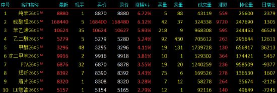 | 2026年3月27日,国内期货主力合约互有涨跌。纯苯、碳酸锂涨超6%,苯乙烯(EB)、乙二醇(EG)涨超5%,甲醇涨超4%,PX、PTA、短纤、瓶片涨超3%。跌幅方面,集运欧线跌超3%,烧碱、沪银跌超2%。