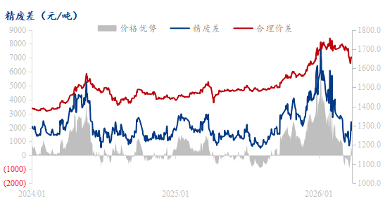 数据来源:Mysteel 预测 随着美以逐渐进入谈判及冲突消息并行的状态后,有色金属贵金属均呈现不同程度的反弹,沪铜基本面转好同样驱动价格上行,但战事尚未结束,盘面多有反复,短期铜价上方依然承压。基本面上,国内铜精矿库存同比历年处于偏低位置,且受海外铜矿资源偏紧及地缘冲突影响发运困难的问题,铜矿资源短缺依然托底铜价。主流地区精废铜价差回落,主要是地方财税预期谨慎,含税采购成本抬高,再生铜替代性消退,但终端数据暂未有乐观表现,终端对铜价反馈力度弱。 七禾带你去调研,最新调研活动请扫码咨询