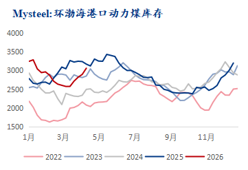 数据来源:钢联数据 综上:上周环渤海区域港口累库明显,其余港口库存均为窄幅波动。近期大秦线日均发运量接近满发,市场在看涨情绪推动下价格坚挺上涨,部分贸易商对低卡低硫优质资源持挺价惜售心态,但终端电厂在低日耗高库存下需求释放有限,非电维持刚需采购但对高价接受度较低,上下游交投僵持下市场实际成交稀少,导致煤价持续上涨动力支撑不足。至上周下半程市场情绪有所回落,贸易商出货难度较大,多数市场参与者反映有价无市,港口库存累积明显。大秦线春季检修即将开启,届时港口调入量将有所放缓,需持续关注各方去库情况及终端采购节点。 七禾带你去调研,最新调研活动请扫码咨询
