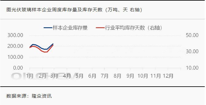 | 报告品种:玻璃 原文链接:https://mp.weixin.qq.com/s/QiIWsisC8wQDo5fVN5W-bg 光伏玻璃行业,作为光伏产业链的关键环节,正面临近年来最为严峻的考验。当前,行业在多重压力叠加下步入深度调整与洗牌阶段。当前行业核心矛盾集中体现为历史高位的综合库存、急剧萎缩的终端需求、日益分化的企业生存状态,以及脆弱的市场价格支撑体系。一场以“生存”为主题的淘汰赛已然拉开序幕。 最先值得关注的点仍是库存,库存高企是对市场最严峻的考验。目前,行业公认的成品库存天数已处于危险高位,部分企业维持在30天左右,而部分企业库存已开始逼近60天的极限,行业平均水平在40-45天区间。这一数字本身已接近乃至超过许多企业的现金流与仓储管理极限。 截至2026年3月26日,隆众调研了解光伏玻璃样本企业库存250.35万吨,折合库存天数43.69天,环比+7.55%;临近三月末,光伏玻璃市场需求进入传统订单空窗期,整体库存增幅较大,供需失衡加剧导致企业库存加速累积,多家企业反馈库存压力显著,部分仓库已接近满库状态。