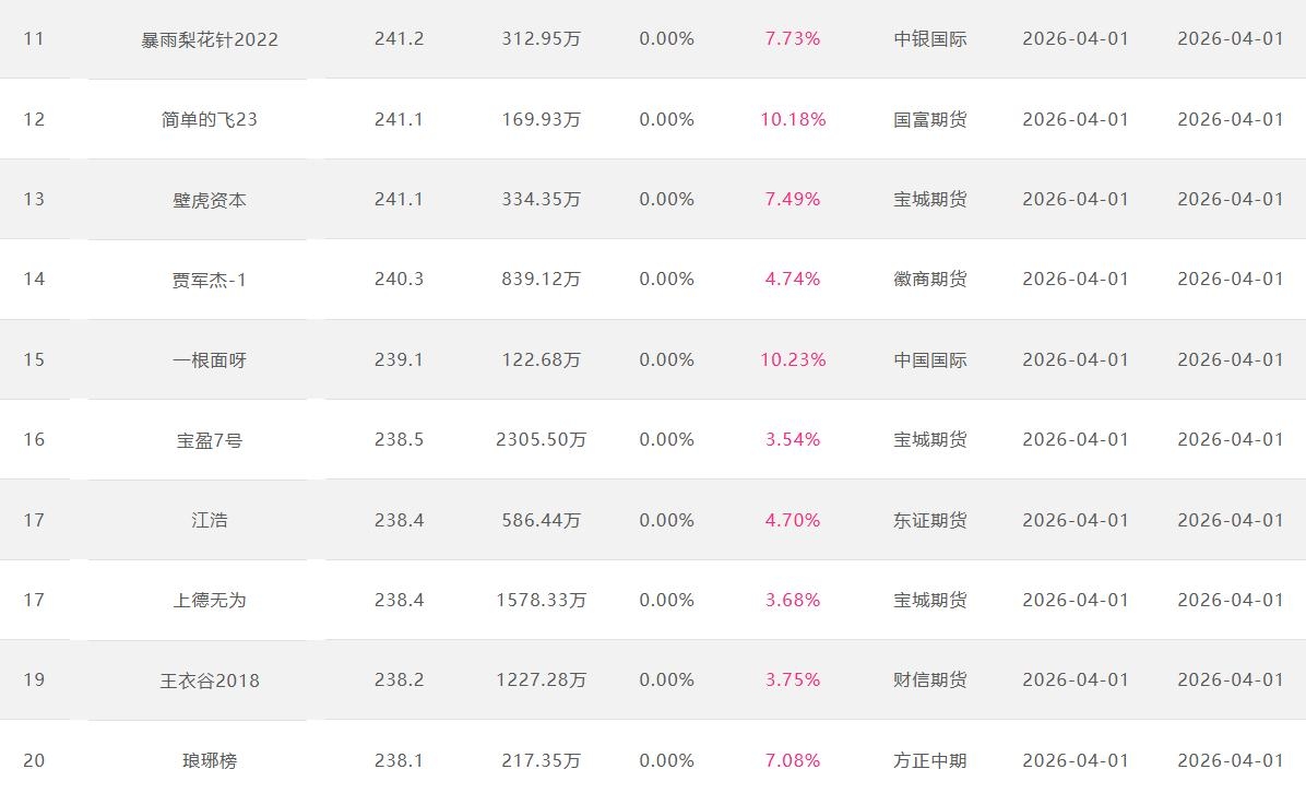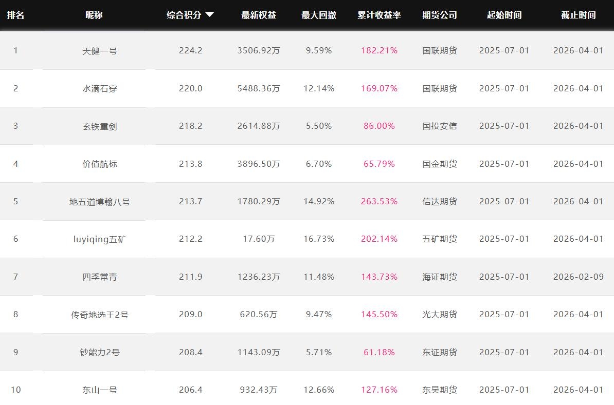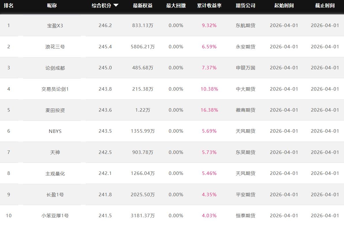 2026年4月【月度排名】(2026年4月1日-4月30日)