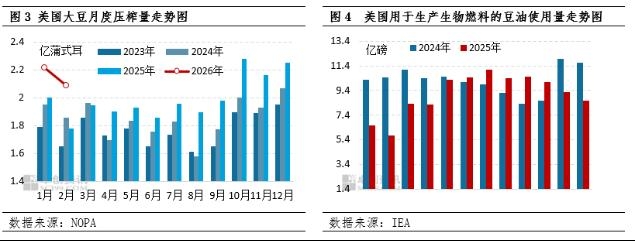 综上,面积数据不及预期,成为季度报告的主要变化,因此报告发布后,美豆期货价格震荡走高,当天收涨1.08%至1172.25美分/蒲式耳。 美豆供应端短期确立 市场不确定性集中在需求端 随着面积以及库存数据的发布,二季度的美国大豆供应端形势基本确立,那么对于价格来说,未来的不确定性将集中在需求端。需求端看,一方面是已经落地的美国生物柴油添加政策,一个是5月份中美元首会谈能否确认美国大豆采购协议。从生物柴油添加政策看,2026年生物燃料强制混合量为268.1亿个可再生识别号码(RINs),较初始提案大幅提升,其中生物质柴油板块配额折合生物燃料约56亿加仑,较2025年增长67%。政策推动下,2025/26产季美国豆油工业用量预计达635万吨,占国内总产量的一半以上,大豆工业端需求的增加,是支撑美国豆油价格上涨的核心支撑;另一方面,5月份的中美元首会谈,能否再度确认2500万吨的采购规模,是决定美豆26/27年度需求的核心变量。因此目前看,需求端整体对价格形成利多影响。
