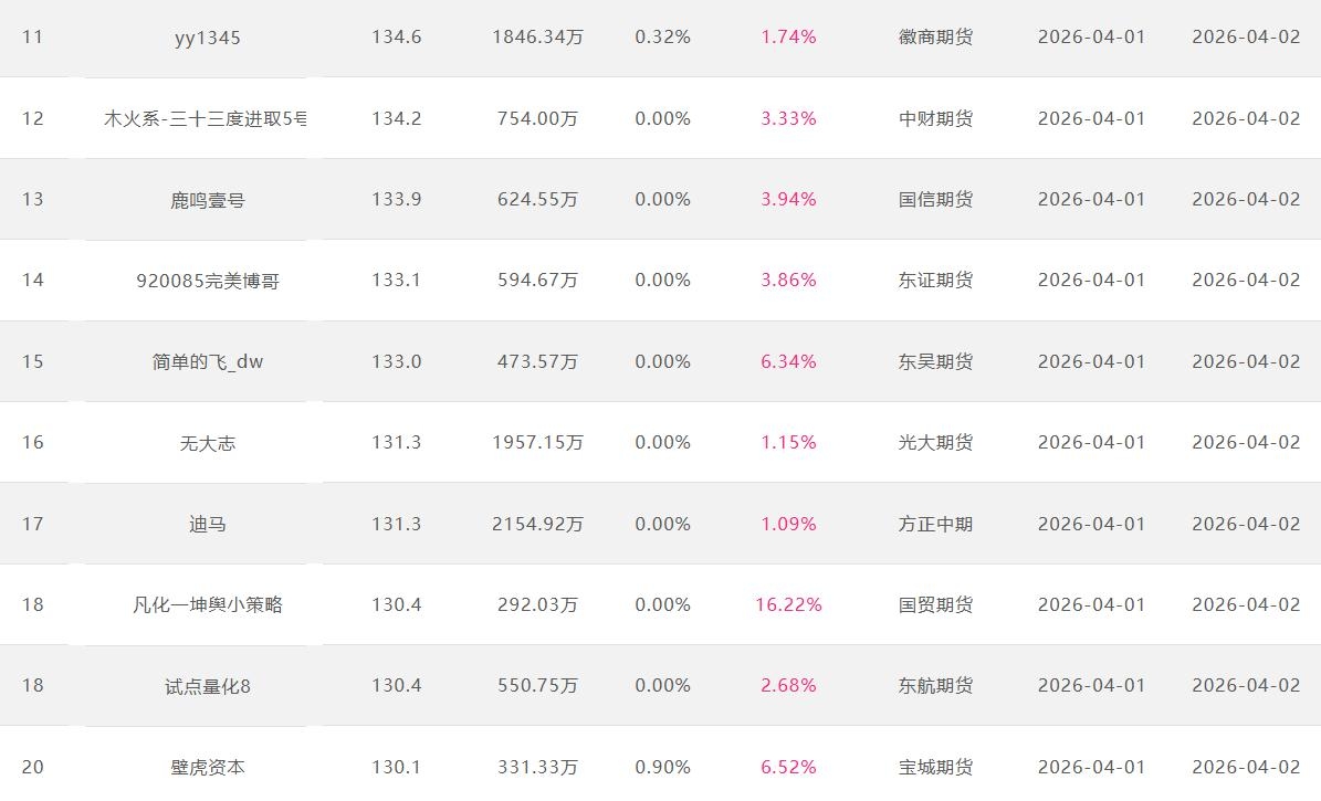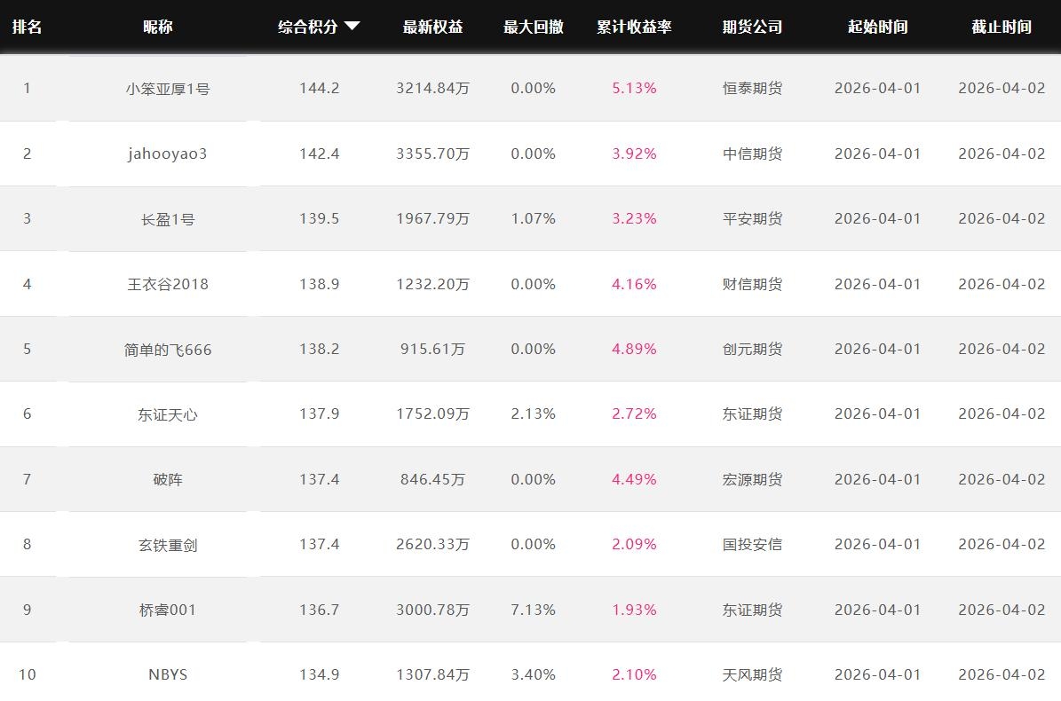 2026年4月【月度排名】(2026年4月1日-4月30日)