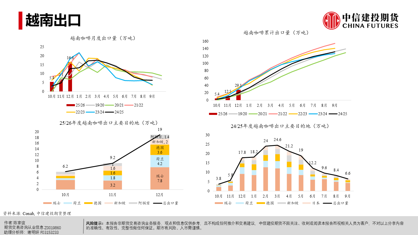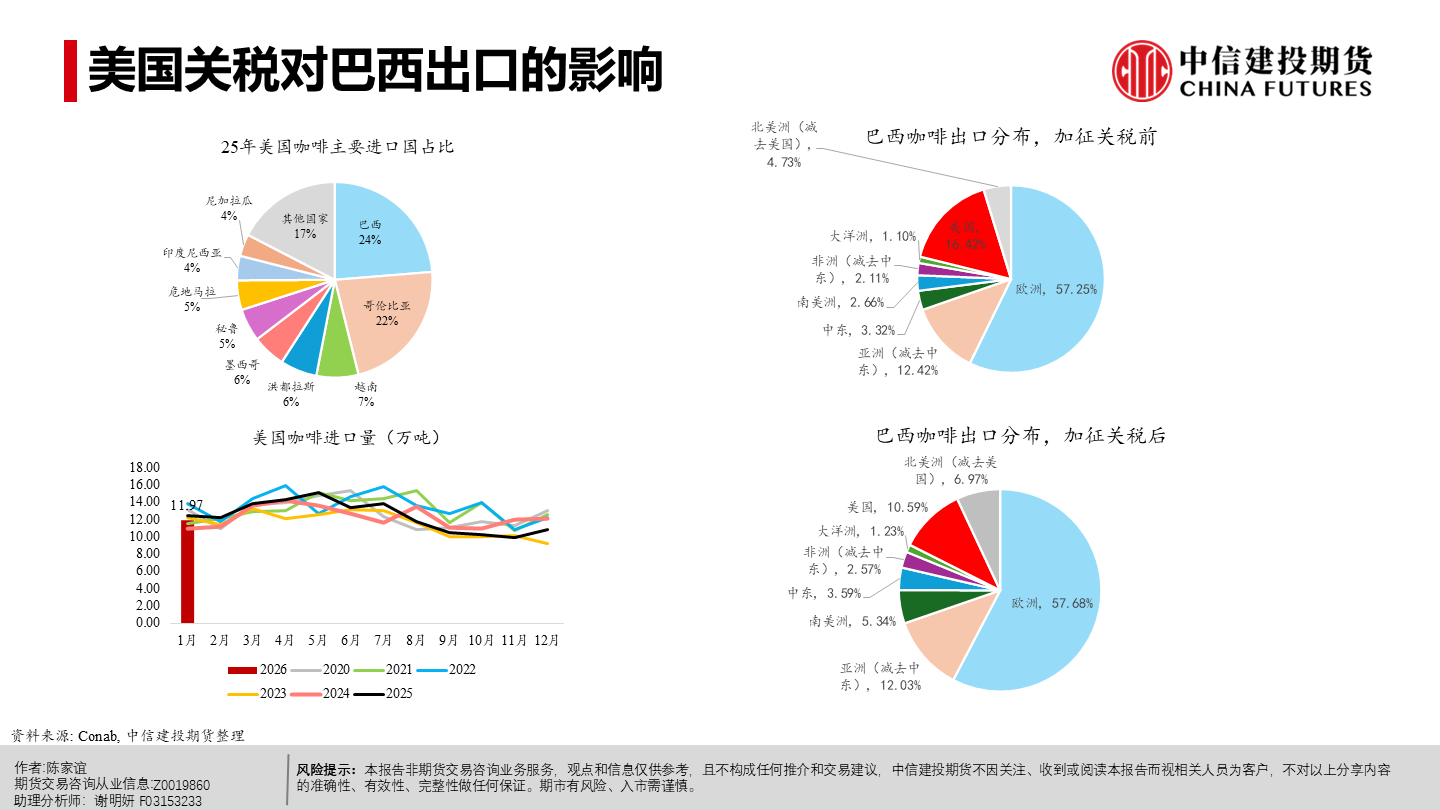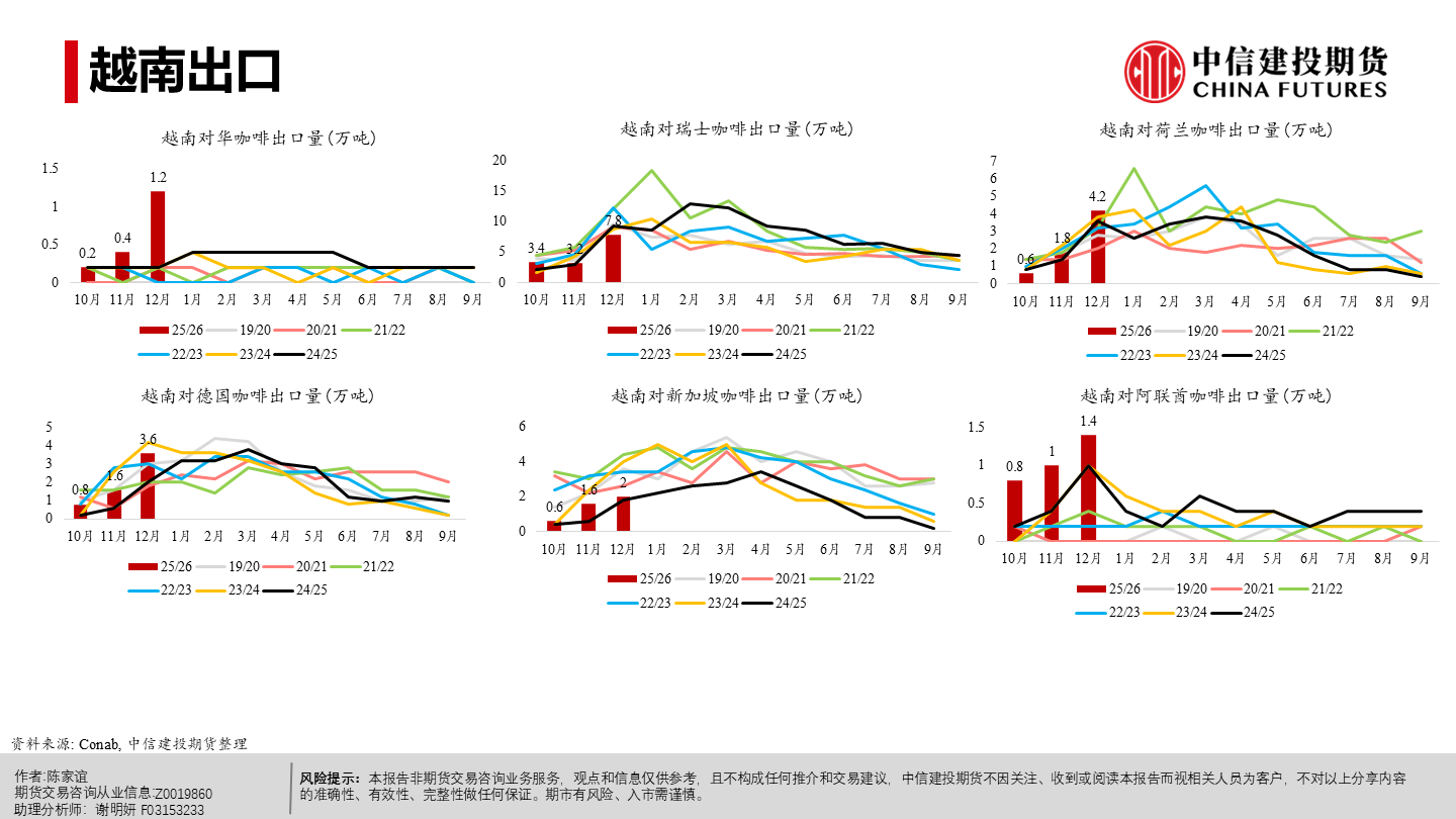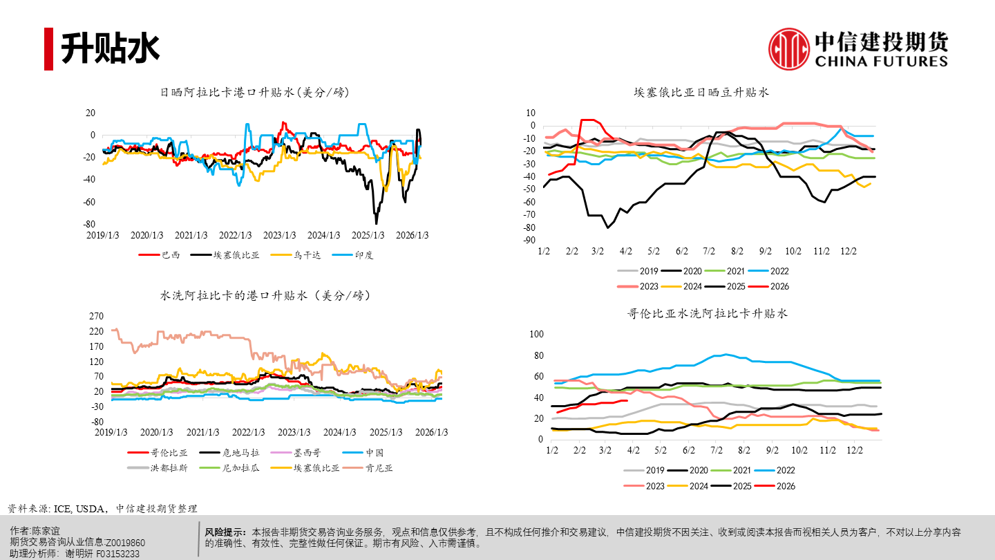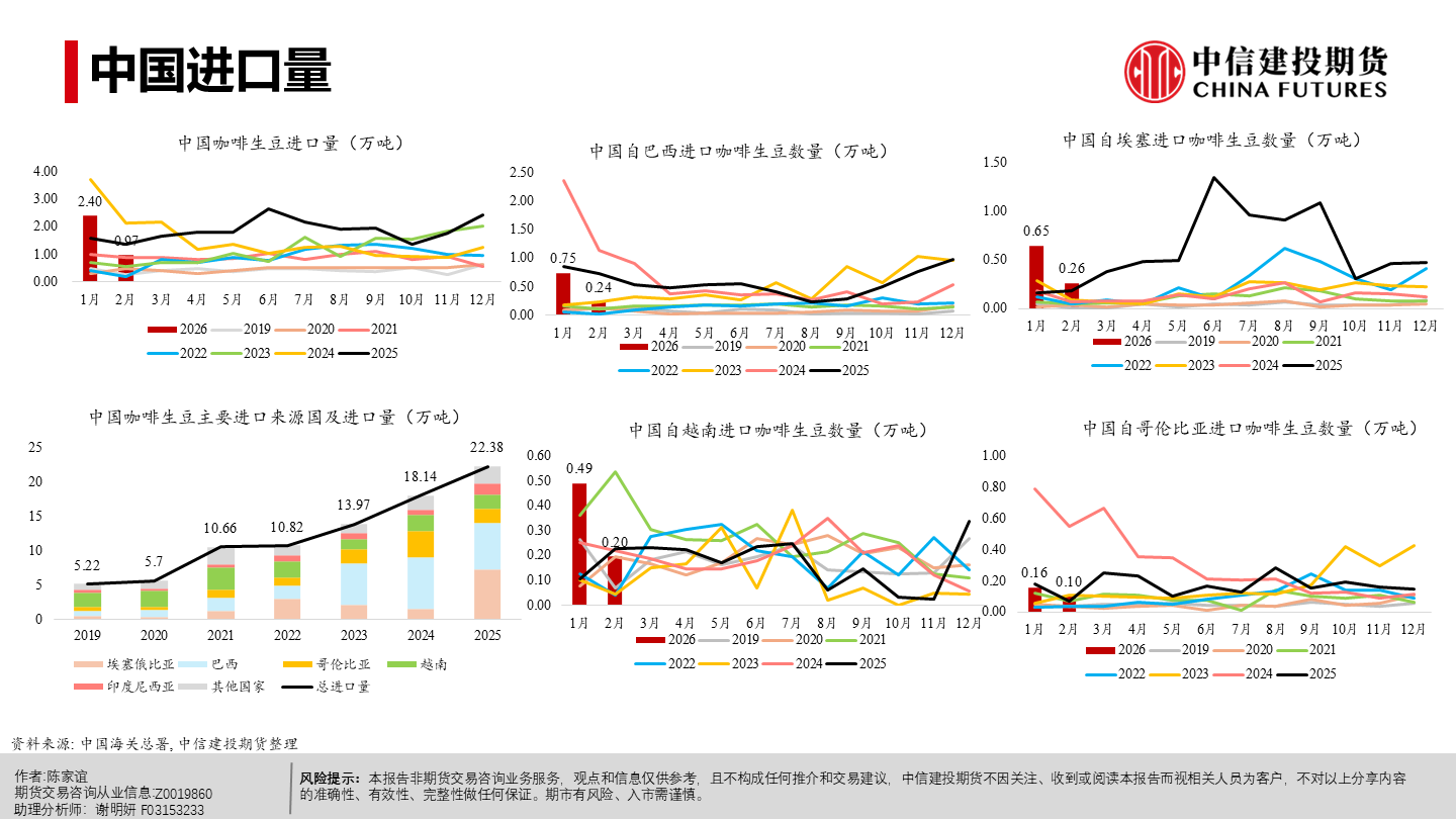 | 今年以来纽约阿拉比卡期货明显回落、短期仍承压。当前市场主要在交易“2026/27年度巴西或创纪录丰产”这一预期,该预期持续压制盘面,也在一定程度上缓解了去年干旱等因素推动咖啡期货涨至历史新高时的供应偏紧预期。 但近端并未实质转松:巴西发运偏慢、交易所库存低位,现货紧张感仍在,情绪“偏紧但不形成趋势性看多”;同时农户惜售、卖货进度偏慢,叠加买家远期采购更谨慎,短期波动或有所放大。 未来 2–3 个月价格大概率在300–350美分/磅区间震荡,若天气、政治或物流无新增扰动,价格或下探;更明确的偏空信号或在年中后随丰产兑现与库存结转逐步体现,2026下半年至 2027年定价中枢倾向于偏宽松,但地缘与政策扰动仍可能阶段性抬升油价与运费、推高运输与能源成本,并影响化肥、农药等关键物资的供应与到货,导致部分产区用肥用药不及时或成本上行,从而增加下一季产量不确定性与价格波动。