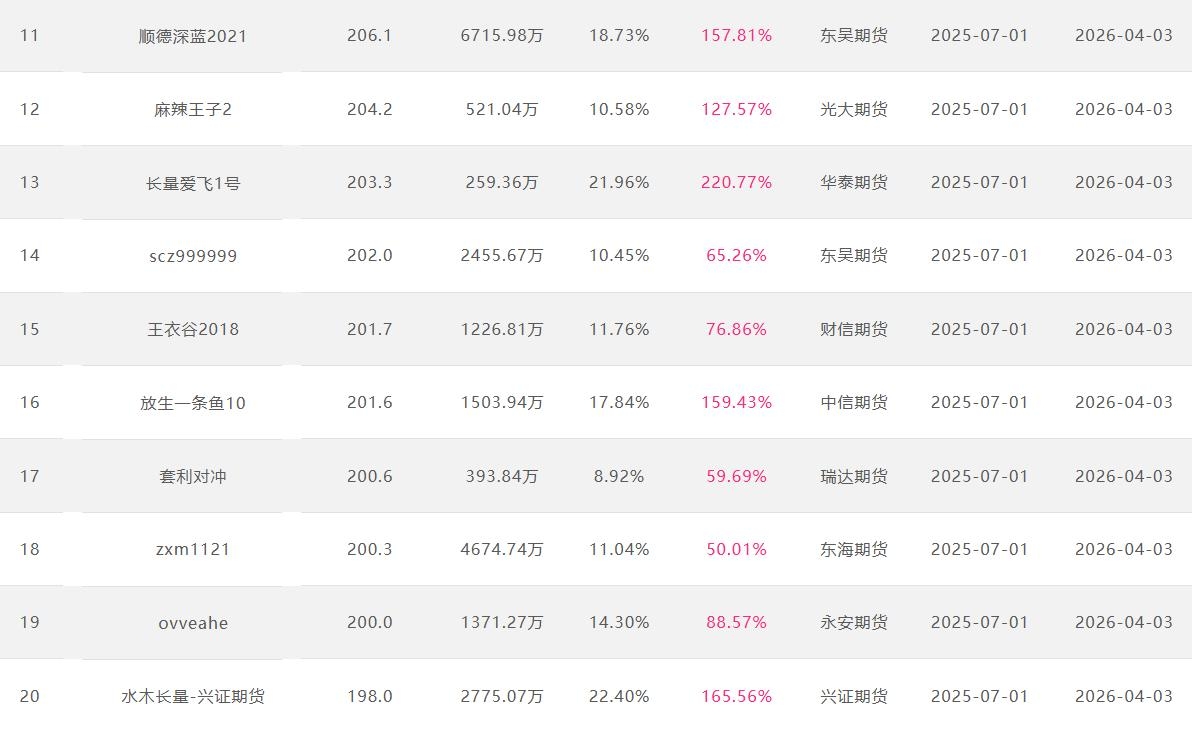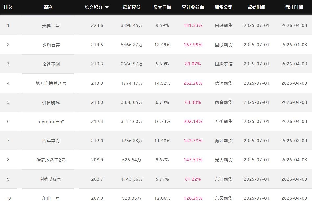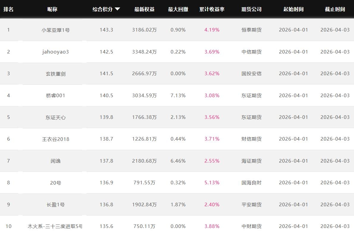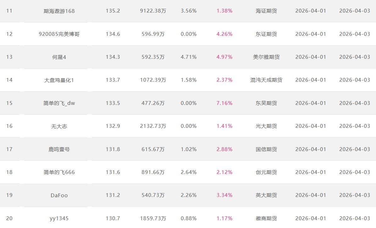 2026年4月【月度排名】(2026年4月1日-4月30日)