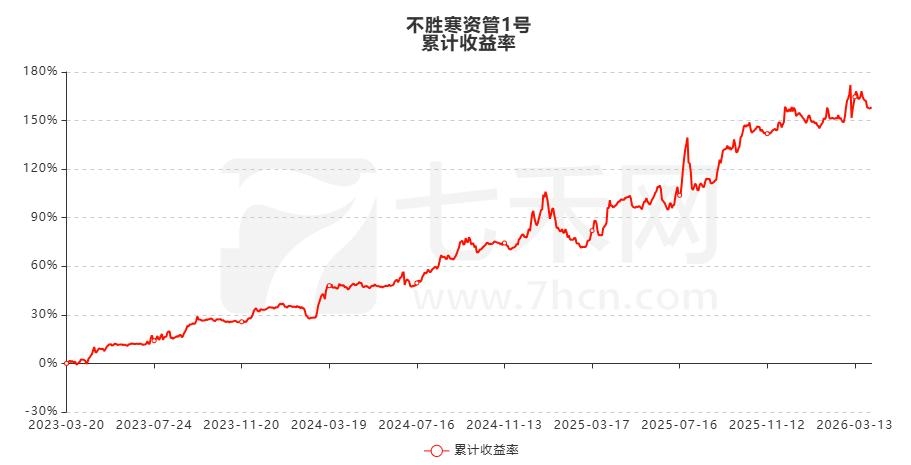 账户“不胜寒资管1号”,于2023年3月20日开始在七禾网资管排行榜上展示,资金曲线整体呈震荡上升态势。截至目前,账户累计净值2.5824,累计收益率158.24%,累计净利润357.32万,最大回撤16.8% 。