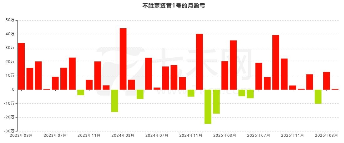 从月盈亏图可以看出,账户“不胜寒资管1号”共计交易38个月,盈利29个月,9个月。