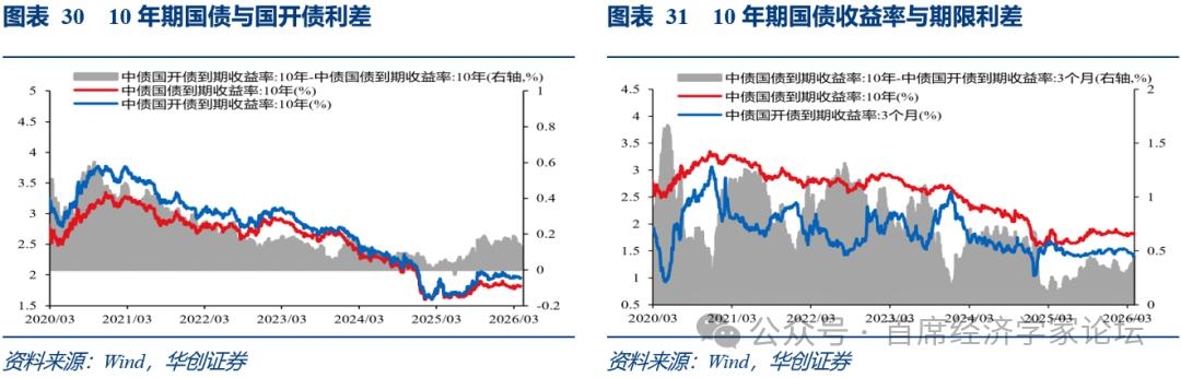 10年国债是无风险利率的标杆品种,我国债券市场成交最活跃的品种有两个:一个是10年国开债,一个是10年国债。两者波动趋势基本一致,但波动幅度不同,这种偏差可以反映债券市场的情绪。此外,长短端利差拉大、收益率曲线陡峭是资金套利的基础,也是债券牛市的基础。