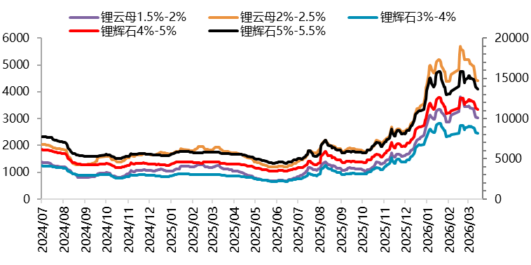 资料来源:Wind,一德有色 图 3.2:国内锂辉石与锂云母报价(元/吨)