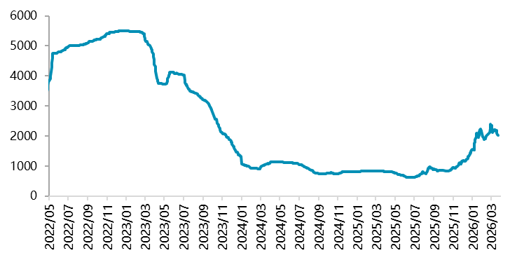资料来源:Wind,一德有色 图 1.3:电碳-工碳价差走势图(单位:元/吨)