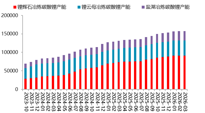 资料来源:矿山企业财报整理,一德有色 南美矿山和盐湖情况:Cauchari-Olaroz项目年末已接近满产,生产成本跻身全球锂化工品生产企业最低梯队,PPG项目与二期扩建项目,是美洲地区最具潜力的两大锂化工品大型供应机会。2025年年度产量目标3-3.5万吨,最终全年产量34100吨,2026年碳酸锂产量指引35000-40000吨。SQM的阿塔卡玛盐湖2025年产量23.4万吨,2026年预计增加2万吨,雅宝的阿塔卡玛盐湖产区预计增加1万吨上下,SQM项目增量多以硫酸锂形式产出。所以,我们看到今年1月智利硫酸锂出口量创历史新高,达到2.78万吨实物吨,2月智利硫酸锂出口总量为1.21万实物吨,同样全部出口至中国,环比下降56.50%,但同比增长17.10%。 非洲锂矿山:一季度内非洲地区锂矿相关政策变动较多。2月25日,津巴布韦宣布无限期暂停所有锂原矿及精矿出口,覆盖在途货物。目前在津巴布韦的主要中资企业中,仅华友仍持有未使用完的有效出口配额。因此华友在完善新禁令手续的同时,可以继续出口其库存矿产品。中矿、雅化、盛新以及青山等公司本年第一批配额已基本使用完毕,需要完全按照新禁令要求去重新申请新的配额。目前新的申请要求尚未确定,所以后期需要持续关注新的申请要求。从目前的进度来看,津巴布韦禁止锂精矿出口影响会在5月份逐渐显现出来,每个月预估1.2万吨LCE的影响量,具体年内影响要根据企业新配申请情况看。 2.2 中国锂资源:冶炼总产能持续增加,云母占比持续回落 国内碳酸锂冶炼产能持续增加,截至今年2月份,碳酸锂总冶炼产能15.77万吨,主要增量依旧来自于锂辉石冶炼和盐湖冶炼。其中,锂辉石月度冶炼产能增至9.09万吨,占比57.64%;锂云母冶炼产能4.07万吨,占比25.81%;盐湖冶炼产能2.60万吨,占比16.49%。 图 2.1:国内冶炼产能情况