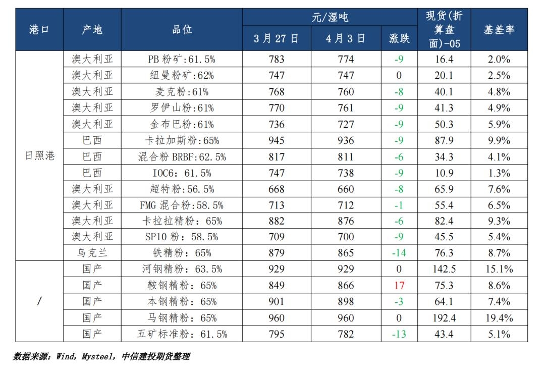 六、总结与展望 产业来看,日均铁水产量 237.39万吨,环比上周增加6.30万吨,下游需求启动,钢厂利润率大幅回升,后续观察需求的成色。目前处于钢厂复产阶段,预计到4月中旬左右前都会有支撑逻辑,不过继续上行的驱动也不大,基本面以“高铁水产量”为矿价下方托底是更可能的情景,故清明节后至4月中旬铁矿预计高位震荡运行。另外,重点需要关注后续外部和宏观的扰动风险,例如地缘冲突缓和,中矿BHP谈判有实质进展均可能触发多头获利了结。 责任编辑:七禾编辑 |