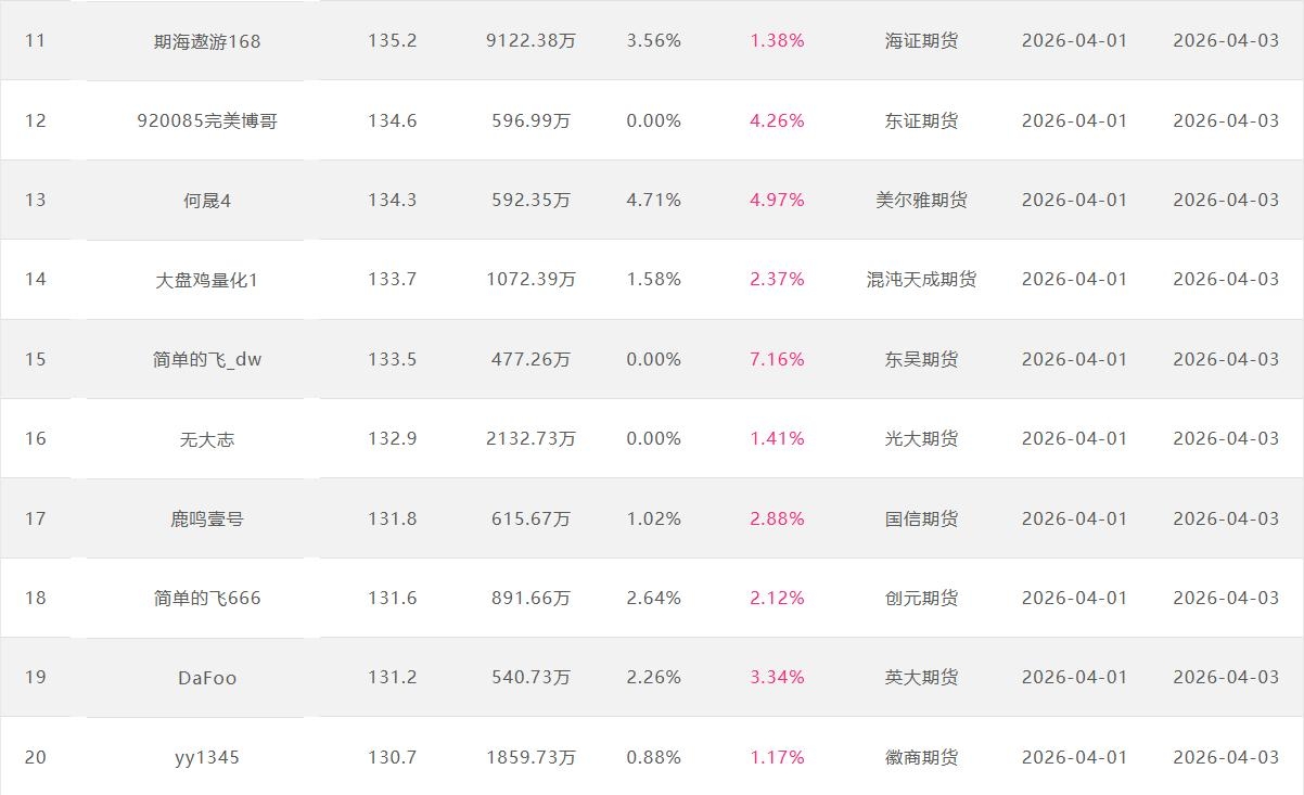 2026年4月【月度排名】(2026年4月1日-4月30日)