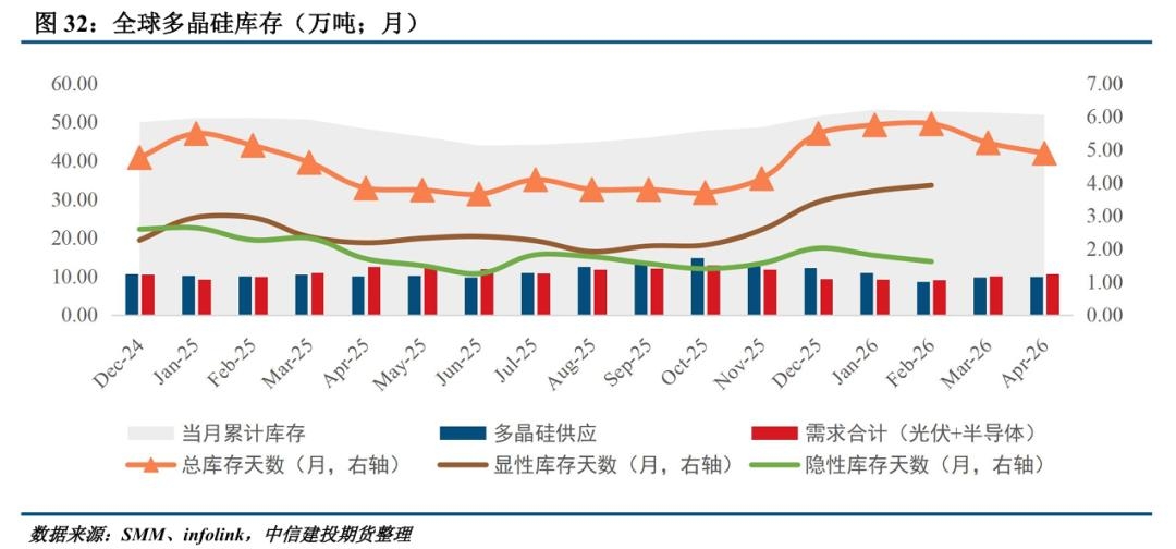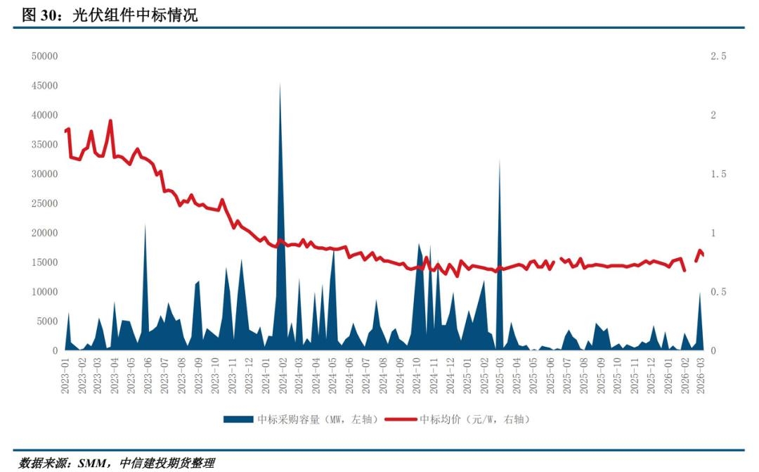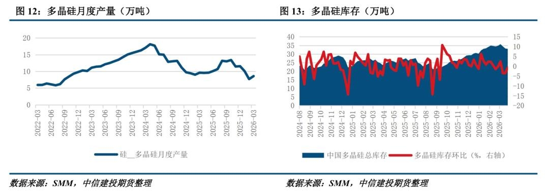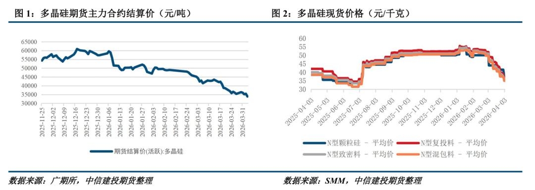 | 一、市场运行回顾 本周多晶硅期货偏弱运行。 现货市场方面,硅业分会消息显示本周多晶硅n型复投料成交价格区间为3.5-3.7万元/吨,成交均价为3.65万元/吨,环比下滑9.88%;n型颗粒硅成交价格区间为3.6-3.7万元/吨,成交均价为3.65万元/吨,环比下滑9.88%。