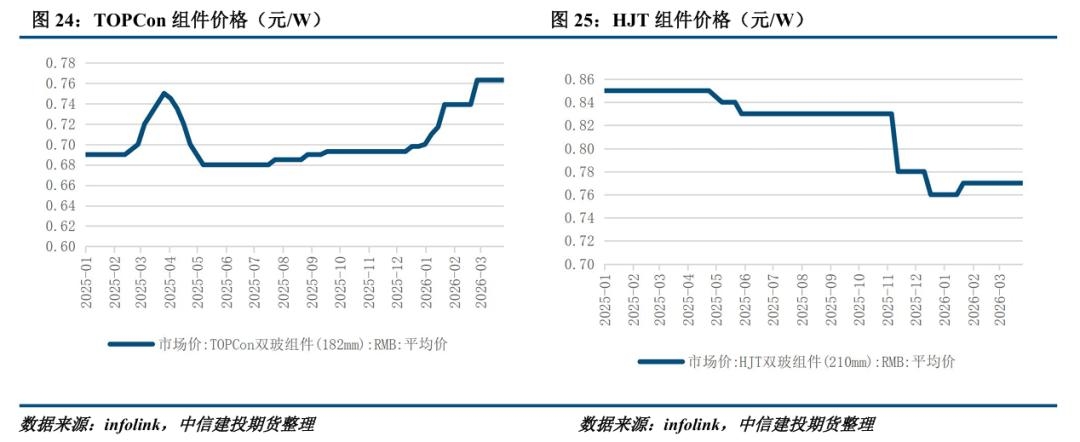 组件方面,infolink数据显示本周TOPCon集中式/分布式均价0.700(0.00%)/0.790(0.00%)元/W。